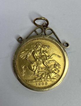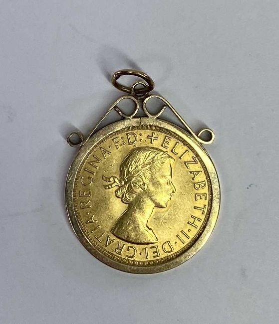 ELIZABETH II FULL GOLD SOVEREIGN 1968 in a nine carat gold pendant mount, 9.9grms gross