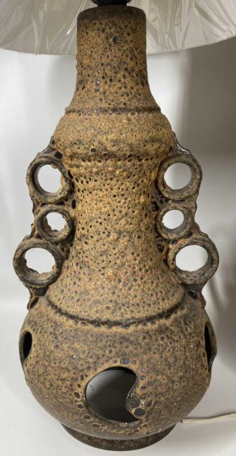 LAVA EFFECT POTTERY TABLE LAMP & ONE OTHER, 77cms overall H with shade the largest lamp