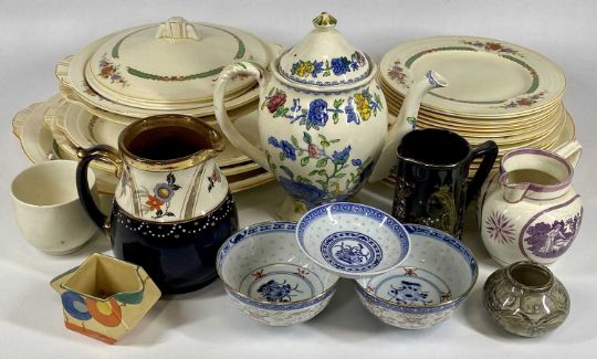 GRINDLEY VINTAGE FLORAL DECORATED DINNERWARE, approximately 22 pieces, Masons Regency coffee pot, 24cms tall, Sunderland lustre jug, ETC