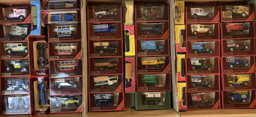 DIECAST MODEL VEHICLES - many examples of delivery vehicles to include 1922 Foden Steam lorries with various advertisers on the side to include 'His Masters Voice', Spillers, Tate and Lyle packet sugar, Harrods, Michelin, ETC. A 1920 Model AC Mac, 1919 Walker electric vans, 1910 Renault type AGs, 1912 Model T Fords, also with various advertisers including Pepsi, Goblin and Rosella, a small quantity of tram cars to include Y-15 Preston tram cars, all from the Yesteryear Collection, also, two model Grand Prix cars, 1935 ERA Rib type vehicles