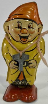 WALT DISNEY DOPEY - from Snow White and the Seven Dwarfs clockwork tin plate toy, 13cms H, with winding key