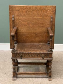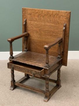 ANTIQUE OAK MONK'S BENCH, narrow example with single drawer, 110cms H, 76cms W, 45cms D