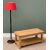 MODERN LIGHT OAK LONG JOHN COFFEE TABLE, 50cms H, 110cms W, 50cms D and a turned column standard lamp with a red shade, 160cms H