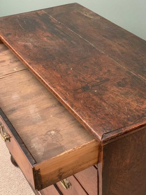 GEORGIAN OAK CHEST of one long over two short over two long drawers, on bun feet, 94cms H, 105cms W, 52cms D