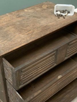19th CENTURY OAK CHEST of two short over two long drawers horizontal carved linenfold detail, on bracket feet, 78cms H, 91cms W, 48cms D