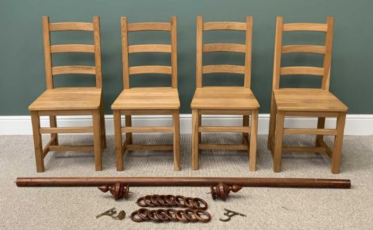 MODERN DINING CHAIRS (4) in light oak effect and a curtain pole ETC