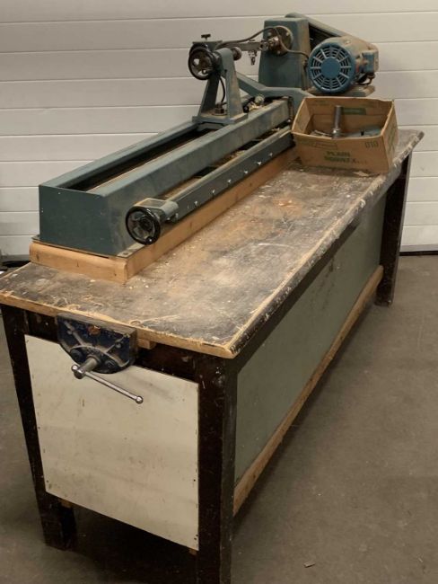WOODWORKING LATHE & BENCH (R T C), 120cms H, 188cms W, 62cms D E/T,