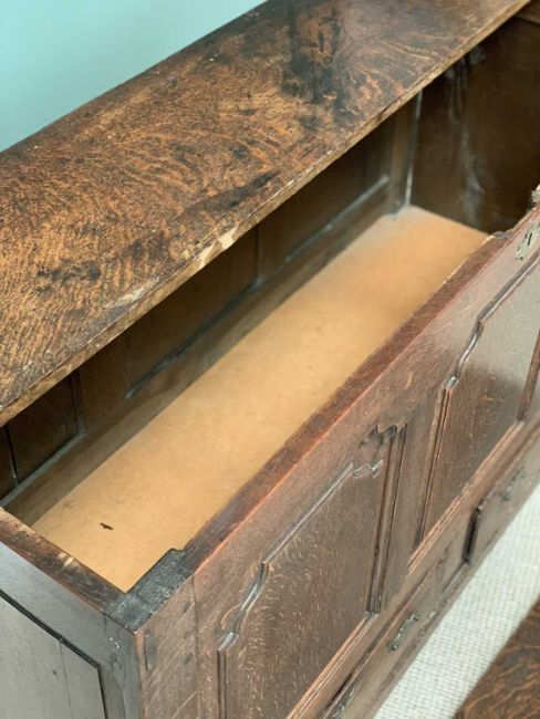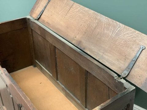 19th CENTURY OAK MULE CHEST with three fielded panels to the front and two base drawers, 92cms H, 149cms W, 54cms D