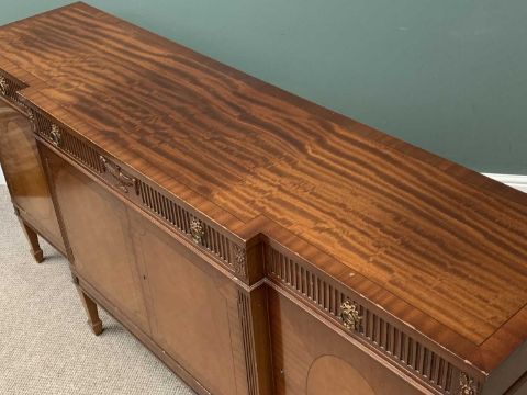 REPRODUCTION MAHOGANY BREAKFRONT SIDEBOARD (H & L Epstein), on spade supports, 89cms H, 190cms W, 48cms D