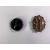 MAUREEN EDGAR - a circular silver brooch, marks for Edinburgh 1997 and having a black agate centre with subtle gold streaks, 27grms gross and an oval white metal framed agate brooch (no marks)