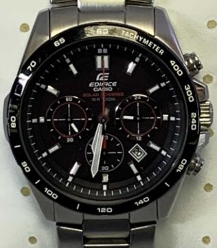 CASIO EDIFICE SOLAR POWERED STAINLESS STEEL BRACELET WRISTWATCH - Model No 5274, in original box with instruction booklet