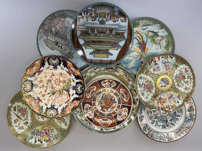 ASSORTED CHINA including Eastern decorative plates, washbasin and jug set ETC, also a small cloisonne vase, 16cms H