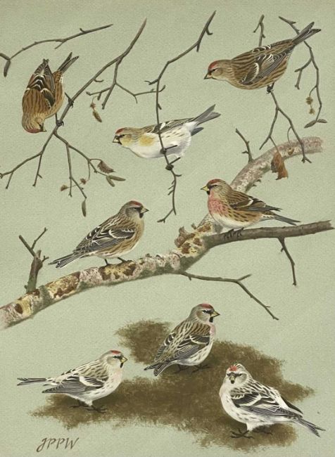 JAN WILCZUR (initialled J P P W) watercolour - eight finches, 37 x 26cms and MARTIN WOODCOCK watercolour - ornithological study, signed, 20 x 34cms