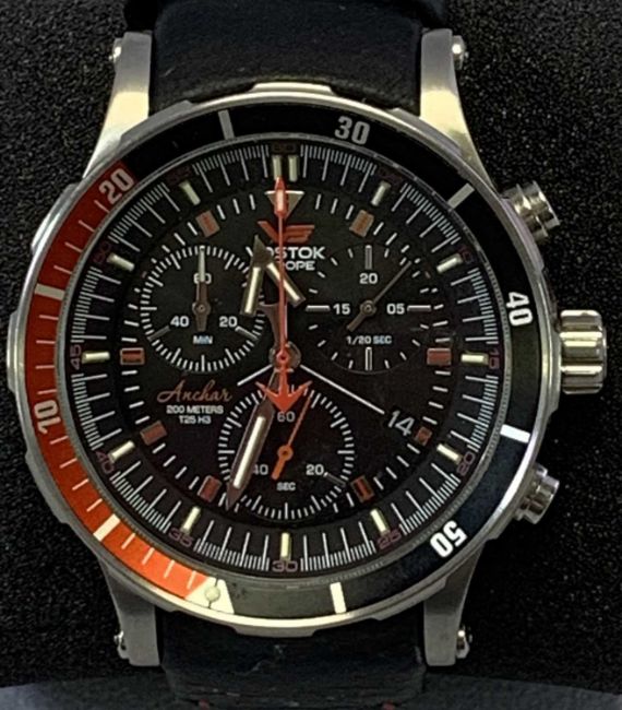 VOSTOK EUROPE ANCHOR CHRONOMETER WRISTWATCH - in stainless steel with leather strap, Product No 0619/3000, in original presentation case with instructions and spare strap