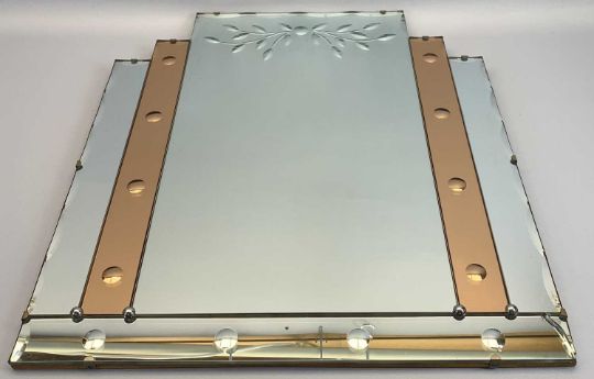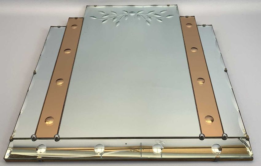 ART DECO WALL MIRROR and two framed quantities of vintage glamour postcards, 61.5 x 53.5cms the mirror, 46 x 56.5cms including frames the postcards