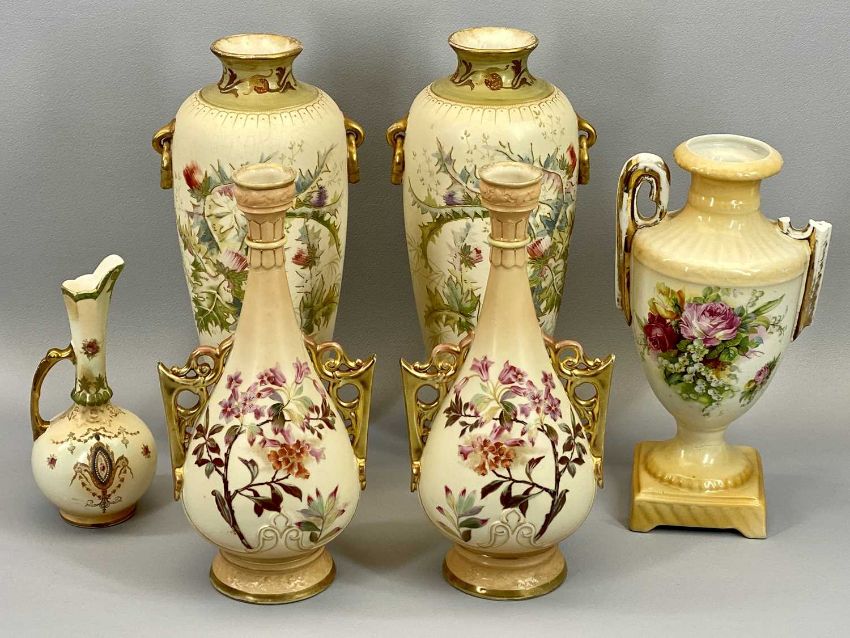 ROYAL BONN BLUSH VASES, A PAIR - 33cms tall, a pair of R H Austria vases, 29cms tall, two other blush vases