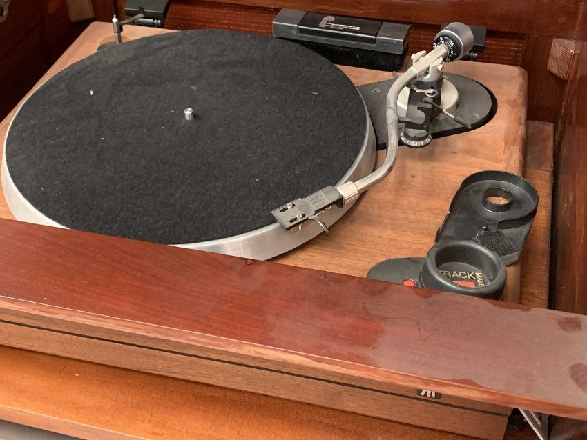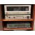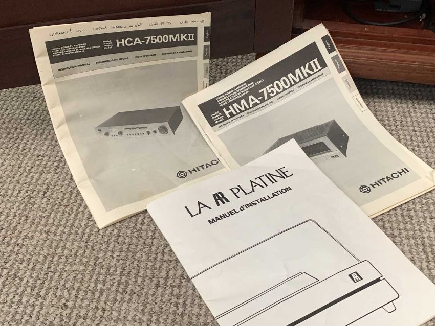 MIXED BRAND HIFI SYSTEM in a vintage style single door mahogany cabinet, the system includes an AR turntable, Hitachi amplifier and a Technics CD player ETC, 97cms H, 60cms W, 52cms D