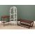 VINTAGE & LATER FURNITURE PARCEL (5) to include a mahogany effect Long John coffee table with under tier magazine shelf, 45cms H, 122cms L, 46cms W, Edwardian mahogany two tier side table, 76cms H, 64cms W, 42cms D, white painted wrought threefold planter stand, 151cms H, 63cms diameter when open and a pair of tapestry seated dining/side chairs in oak, 85cms H, 44cms W, 37cms D