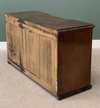 VICTORIAN MAHOGANY INVERTED BREAKFRONT CHIFFONIER with single central frieze drawer and three arched panel cupboard doors, 87cms H, 151cms W, 60cms D