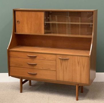 AVALON MID-CENTURY TEAK SIDEBOARD, 137cms H, 136cms W, 46cms D and a similar extending dining table, 74cms H, 102cms W (184cms open), 84cms D
