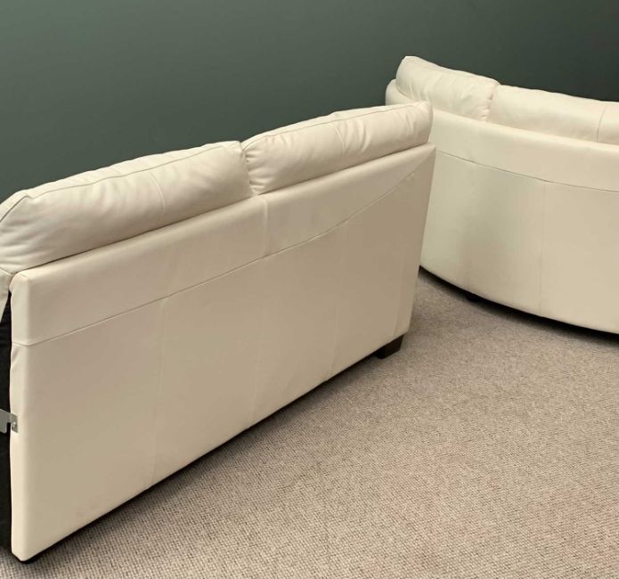 NATUZZI ITALIAN WHITE LEATHER "L" SHAPED SOFA, 92cms H, 300cms L, 90cms D