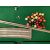 E G RILEY LTD SMALL SIZE TABLETOP SNOOKER TABLE, 4ft 4ins, oak framed, baize covered slate bed, Riley labelled scoreboard, set of composition balls and a pair of cues, 133cms L, 72cms W and a mid-Century chequer top games table with single central drawer and lower open slatted shelf with draughts and chess pieces to the interior drawer, 48cms H, 57cms W, 34cms D