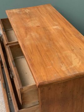 STRIPPED CHEST OF two short over two long drawers with copper effect handles, 82cms H, 108cms W, 46cms D