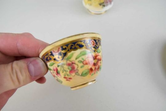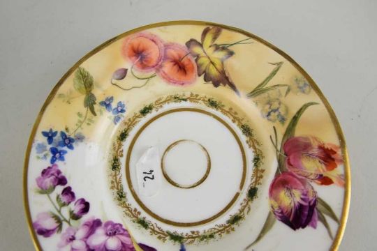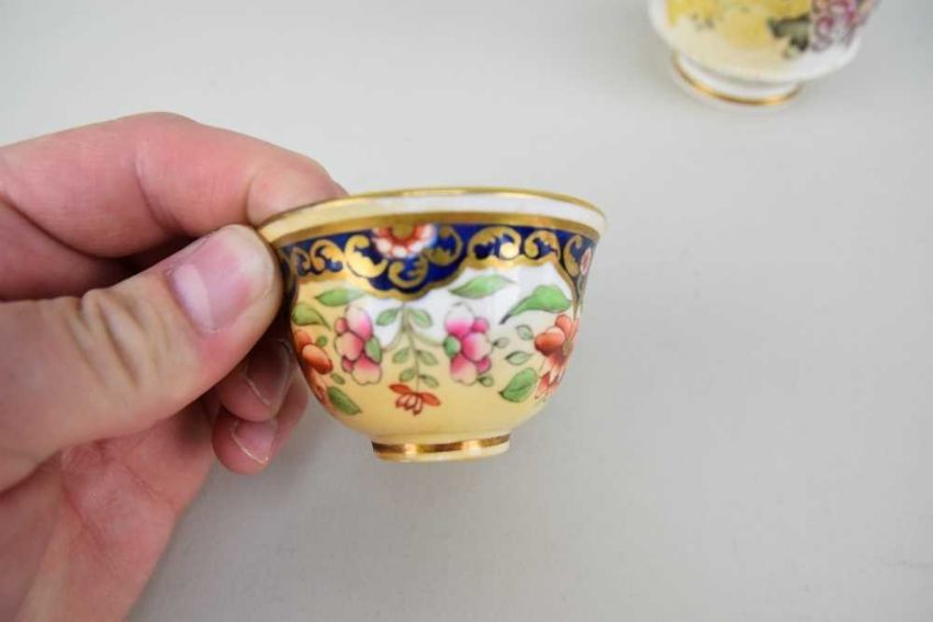 SWANSEA PORCELAIN CABARET CUP & STAND, body finely decorated in a range of flowers, applied beading and gilt vines, together wtih a miniature Swanea Japan tea bowl