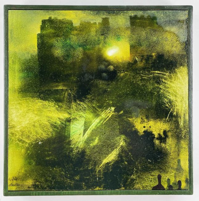SARA PHILPOTT (British, b.1963) oil on board - 'Castle grounds in shades of green', unsigned, framed, 30.5 x 30.5cms