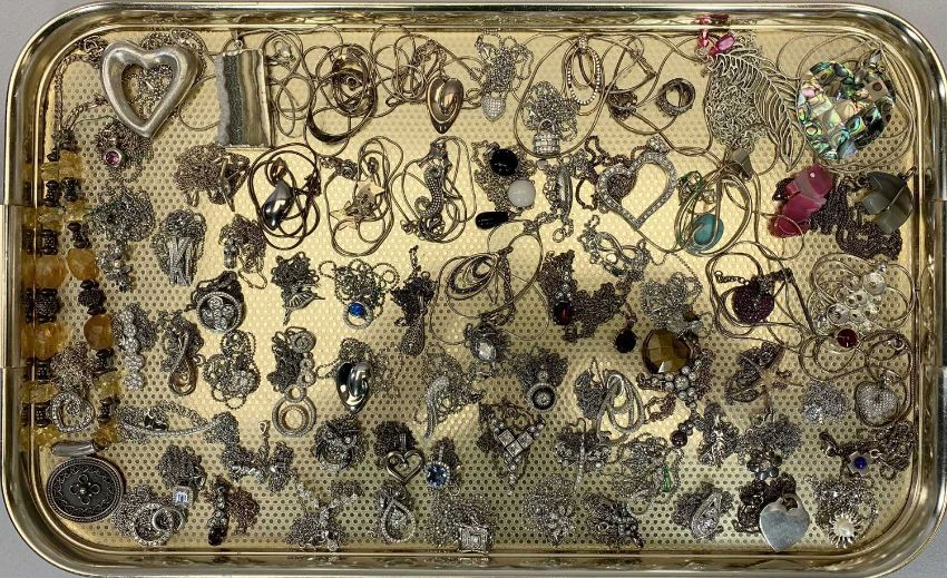 925 STERLING SILVER & OTHER GOOD QUALITY NECKLACES - an excellent collector's quantity, over 100 pieces, mainly fine link mounted with various hard and semi-precious stones, diamantes and other good quality material, lot includes a 925 silver and tigers eye bracelet, ETC