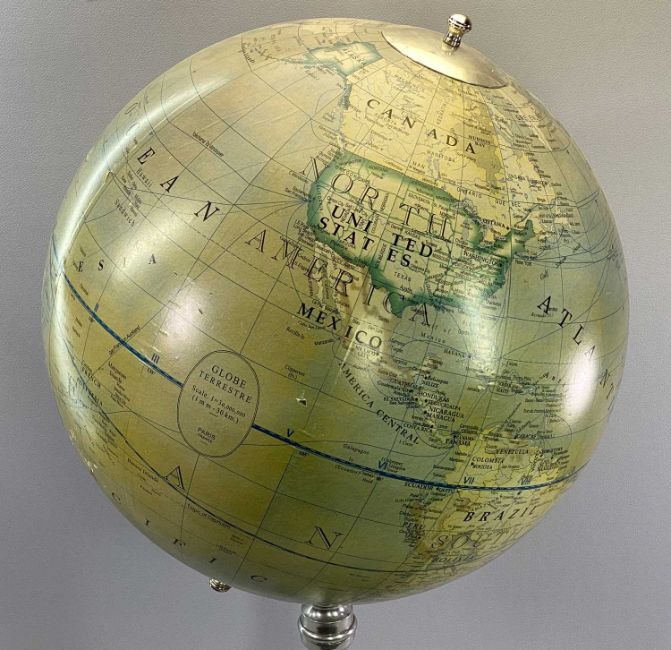GLOBE TERRESTRE - vintage globe, scale 1mm:30km, Paris France, on a chrome base, 87cms H