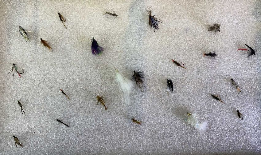 FISHING INTEREST - Jet, The House of Hardy two-piece fly rod and a quantity of flies within a wooden box