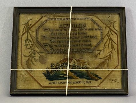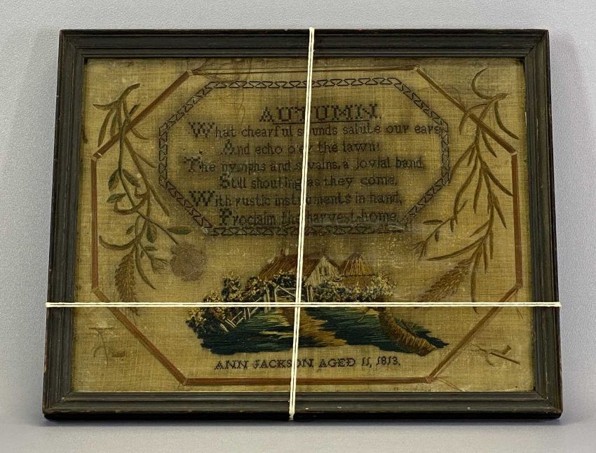 SAMPLER - dated 1883 titled 'Autumn', Ann Jackson, 37 x 47cms overall