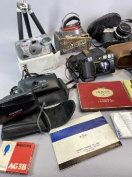PHOTOGRAPHY - Mamiya, Olympus and ETC cameras, also, old set of field glasses and an assortment of similar and other collectable items