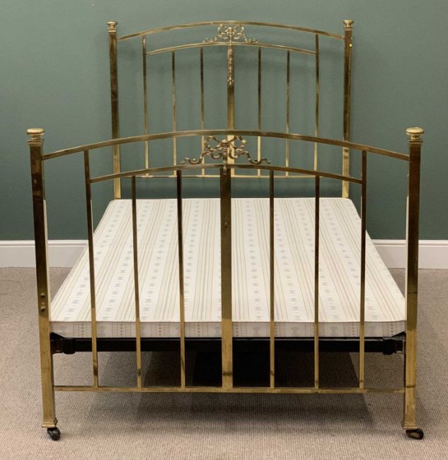 ANTIQUE BRASS BED FRAME WITH RAILS & BASE - 145cms H, 138cms W, 207cms D