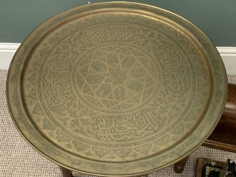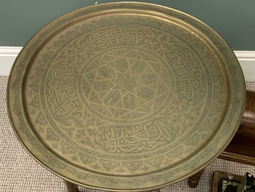 VINTAGE ASSORTMENT - cased Singer sewing machine and a Benares brass topped folding table, 52cms H, 62cms diameter