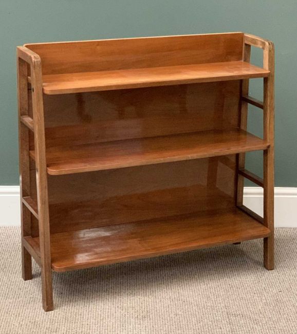 MID-CENTURY STYLE THREE SHELF OPEN BOOKCASE, 84cms H, 88cms W, 30cms D