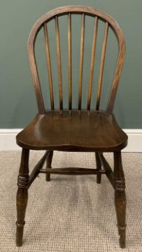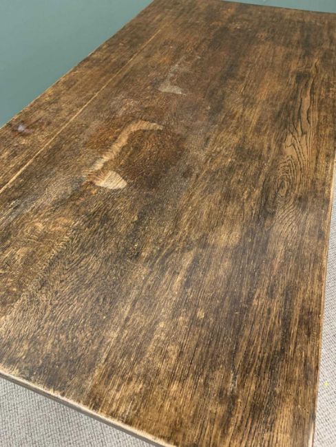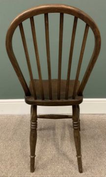 VINTAGE OAK REFECTORY TYPE TABLE - 75cms H, 153cms W, 175cms D and a set of six hooped and spindle backed chairs