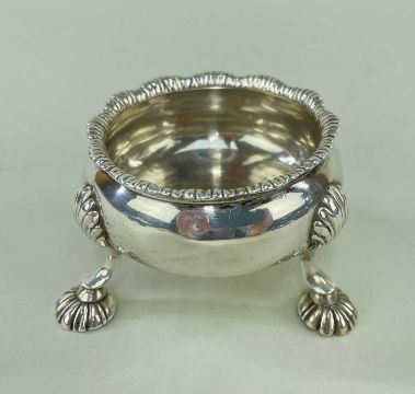 GEORGE II SILVER SALT, David Hennell I, London 1759, with shell knees and feet, and rocaille rim, 8cm d. x 4.5cm h, appr. 2.8ozt