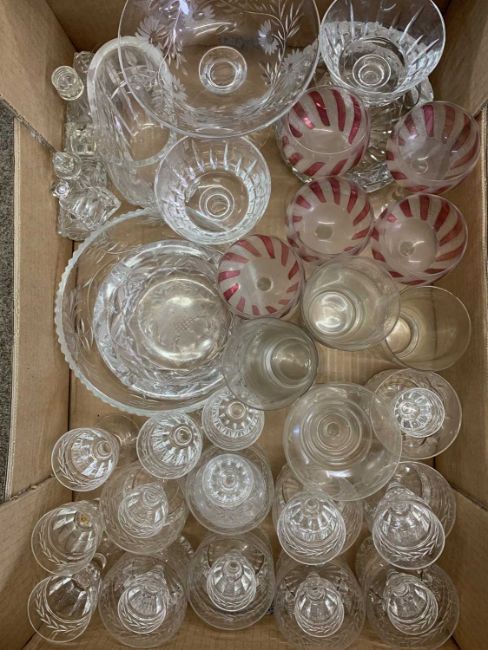QUALITY DRINKING & OTHER GLASSWARE - to include decanters with stoppers (3 boxes)