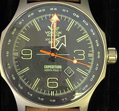 VOSTOK EUROPE EXPEDITION NORTH POLE 168/3000 WRISTWATCH - with leather strap, in original packing case