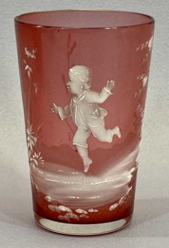 ANTIQUE CRANBERRY GLASS, Mary Gregory style Cranberry beaker, Copeland Spode cabinet china, ETC