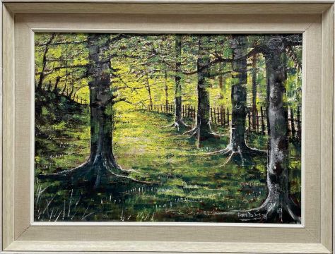 HOWELL DAVIES two acrylic on board - Woodland Landscape, signed and dated '74, 40 x 57cm, and another smaller by the same hand (2)