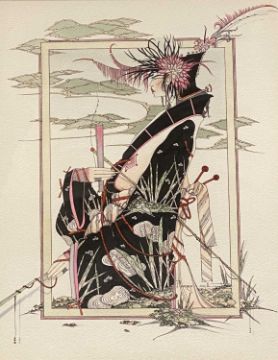 J C ILLINGWORTH prints, a pair - stylised Japanese figures, 30 x 23cms and a still life by the same artist