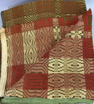 VINTAGE WELSH WOOLLEN BEDSPREAD - in brown, red and pink reversible tones, 206 x 168cms