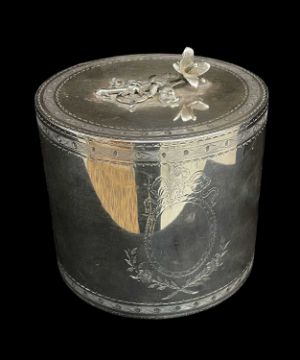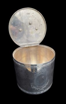 EDWARDIAN SILVER CYLINDRICAL TEA POY, Blackburn & Tysall, London 1905, hinged lid with floral knop and brightcup bands, 13cms high
