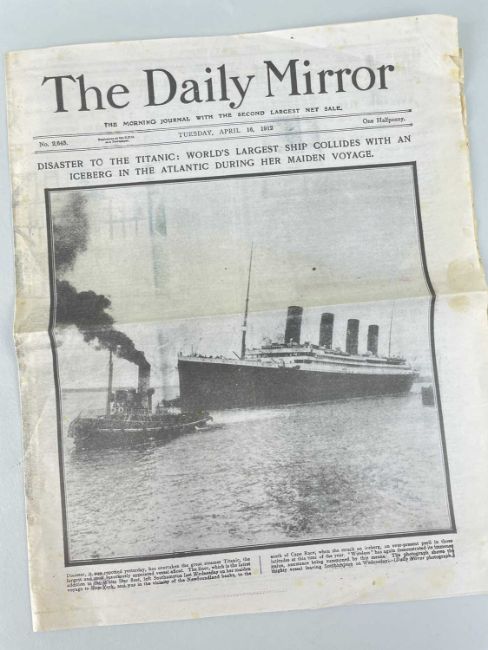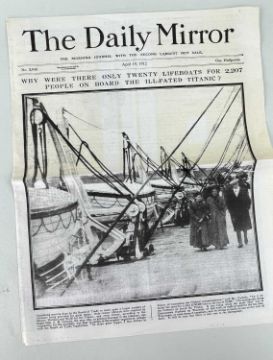 TITANIC INTEREST: Group of three Titanic postcards, 2x 'Nearer Thy God to Thee' and 'Save, Lord, we perish', a Titanic memorial card; a set of modern Dalkeith 'The Titanic Tragedy' postcards, together with three repoduction Daily Mail newspapers dated 19th and 20th April (8)Provenance: Ex lots 143 and 3, Henry Aldridge & Son 18 Sept 2004