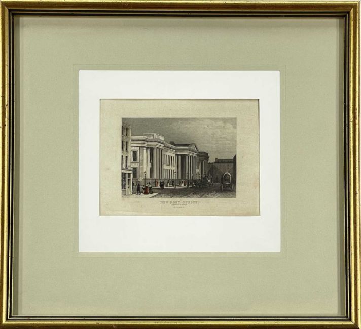 FIVE ANTIQUE ENGRAVINGS RELATING TO THE POST OFFICE comprising two repeated pairs, each framed and glazed
