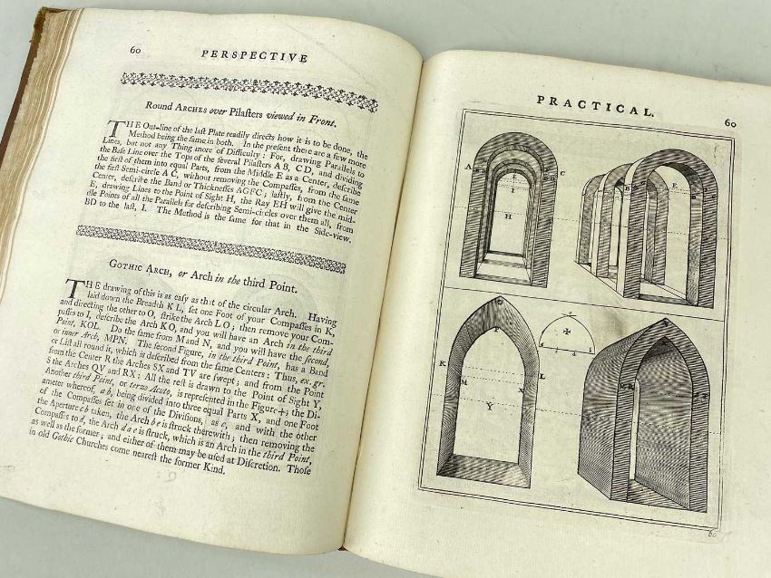 (RARE BOOK) THE PRACTICE OF PERSPECTIVE: OR, AN EASY METHOD OF REPRESENTING NATURAL OBJECTS According to the Rules of Art, with 150 copper plate engravings, by Jean DuBreuil (French, 1602–1670) translated by Ephraim Chambers (British, Kendal, Westmorland ca. 1680–1740 Islington), Thomas Bowles & John Bowles (London), 3rd edition, 1749 in full calf, ribbed spine gilt lettered title band, please see online Jean Dubreuil's The Practice of Perspective – Thinking 3D