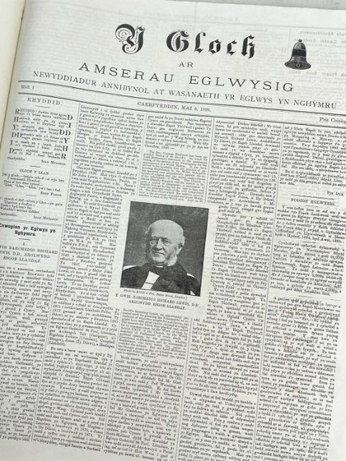 BOUND VOLUMES OF Y GLOCH A’R AMSERAU EGLWYSIG Newddiadur Annibynol at Wasanaeth yr Eglwys yn Nghymru (The Bell and the Church Times Independent Newspaper for the Service of the Church in Wales), rare believed full series from May 6th, 1898, to June 17th 1898, printed in Caerfyrddin (Carmarthen) by the Journal Company, St. Mary Street